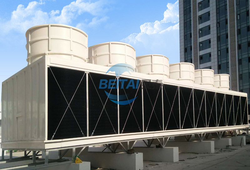 1、閉式冷卻塔實際上是一種蒸發式冷卻塔,冷卻器和濕式冷卻塔的組合,它是臥式的蒸發式冷卻塔,工藝流體在管內流過,空氣 在管外流過,兩者互不接觸。閉式冷卻塔是傳統冷卻塔的一種變形和發展。塔底蓄水池內的水...